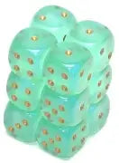 Borealis® 16mm d6 Light Green/gold Luminary™ Dice Block™ (12 dice)